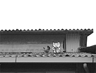 屋根の上でニワトリと語らい中。